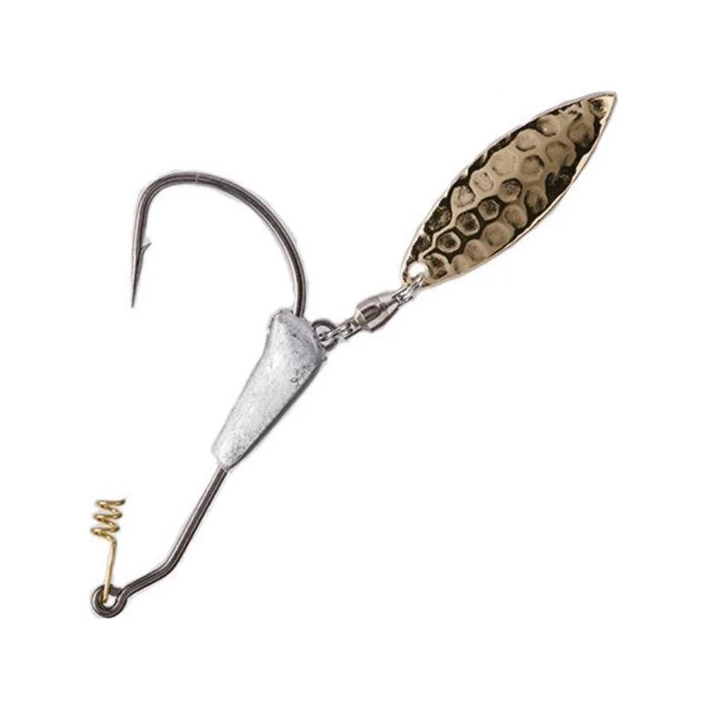 Cet hameçon japonais est identique au PILE DRIVER COUNTER, mais il est déjà équipé d’une palette dorée willow martelée. Efficacité et stabilité sont les maîtres-mots de cet hameçon texan. Votre leurre sera parfaitement maintenu grâce au ressort de fixation présent sur toute la série PILE DRIVER. A utiliser au-dessus des herbiers pour le brochet et les grosses perches. Aujourd’hui tout le monde le sait, associer un hameçon à palette à un shad le rend plus efficace. Le must pour le montage texan shad à palettes.